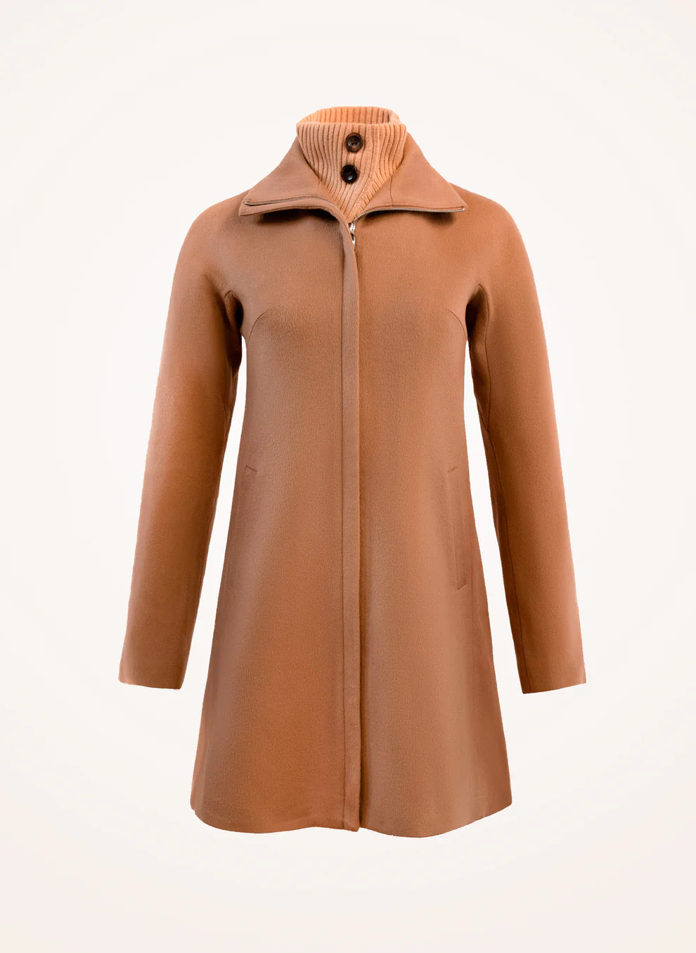 Cashmere Knit-collar acts like a scarf to keep you warm.
