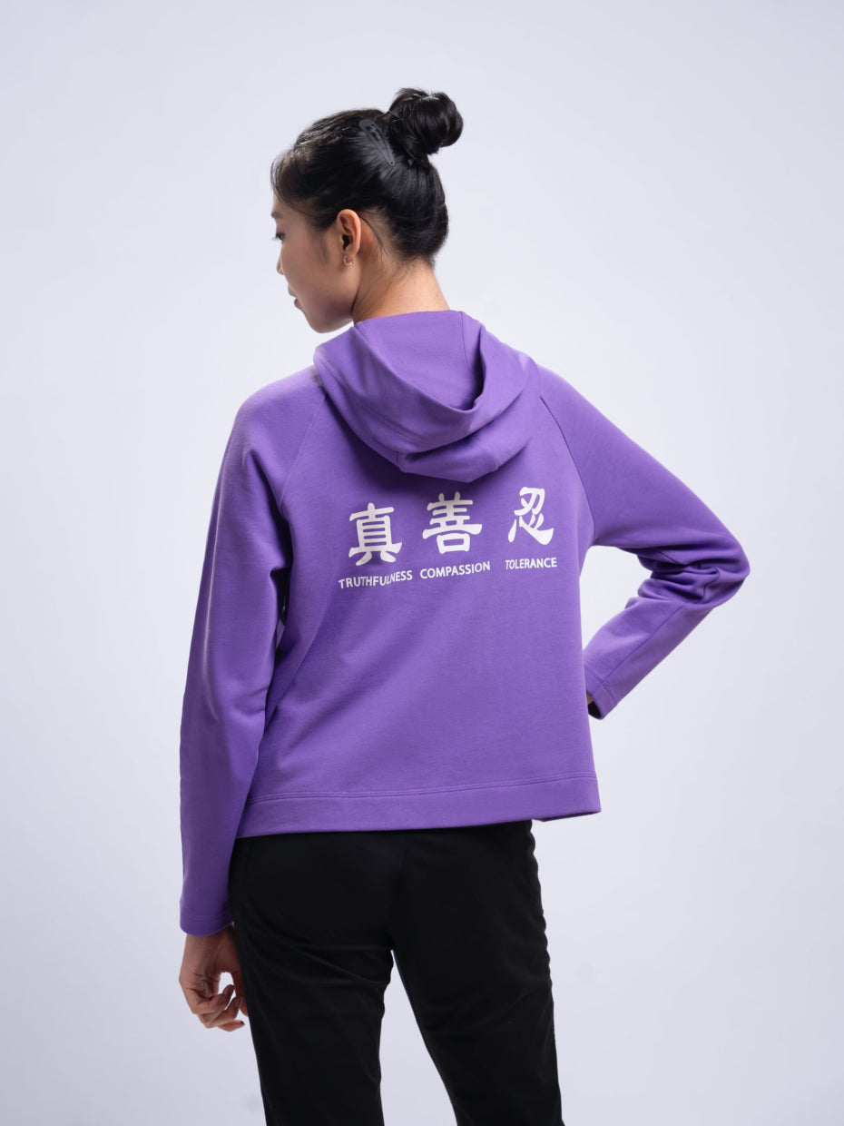 A slim-fit zip-up hoodie that molds to the shape of your body in the same beautiful color range as the Women's "Truthfulness, Compassion, Tolerance" Hoodie. Thoughtful consideration went into choosing 100% cotton fabric made with fine yarn for extra durability and a smooth, comfortable feel.